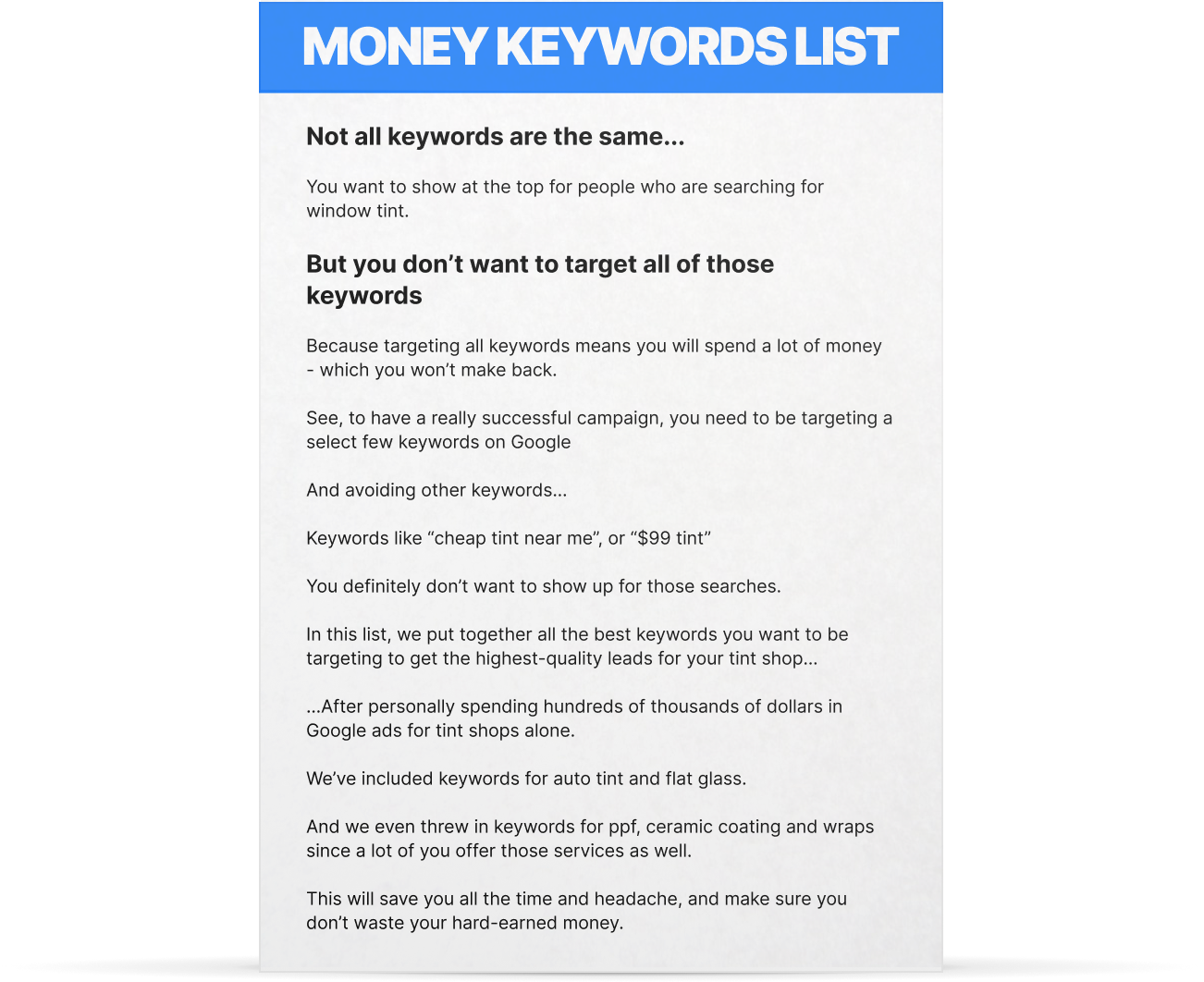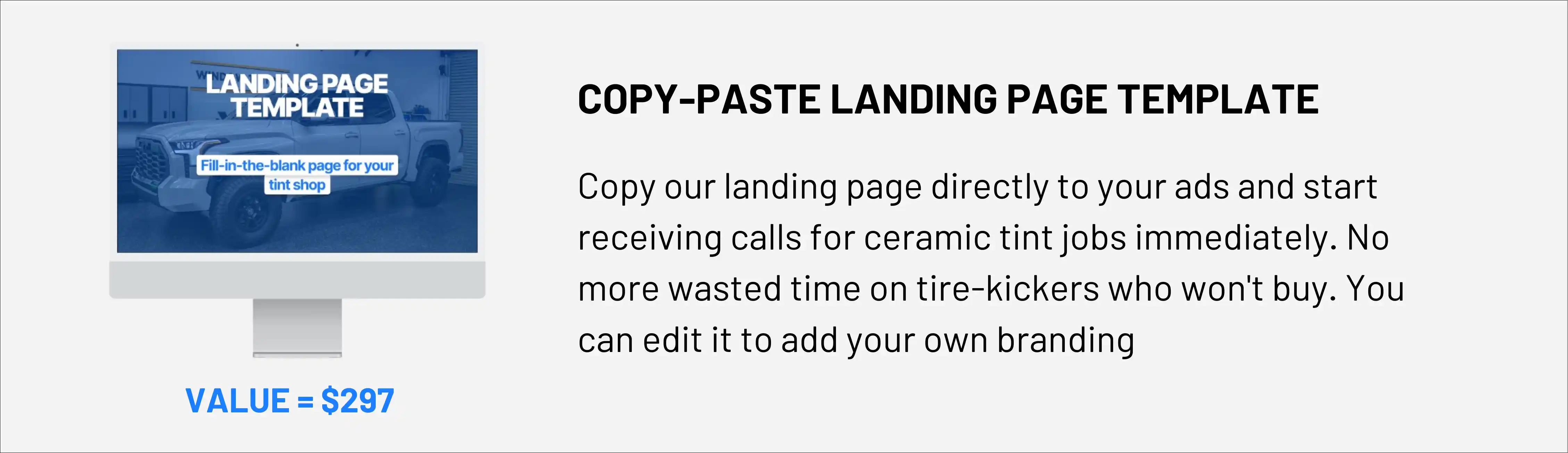 Have the phone ringing off the hook and have people asking about your ceramic tint all because of our secret landing page that transforms visitors into red-hot leads...