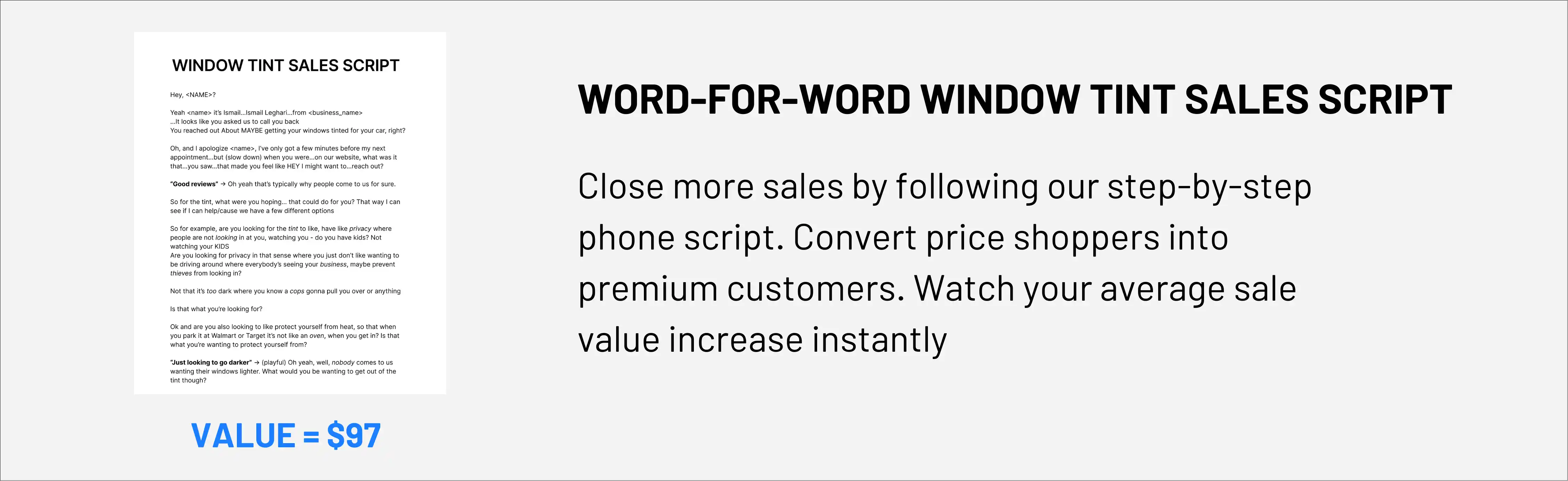 * Attract the right type of customer looking for premium tint (not $99 tire-kickers)