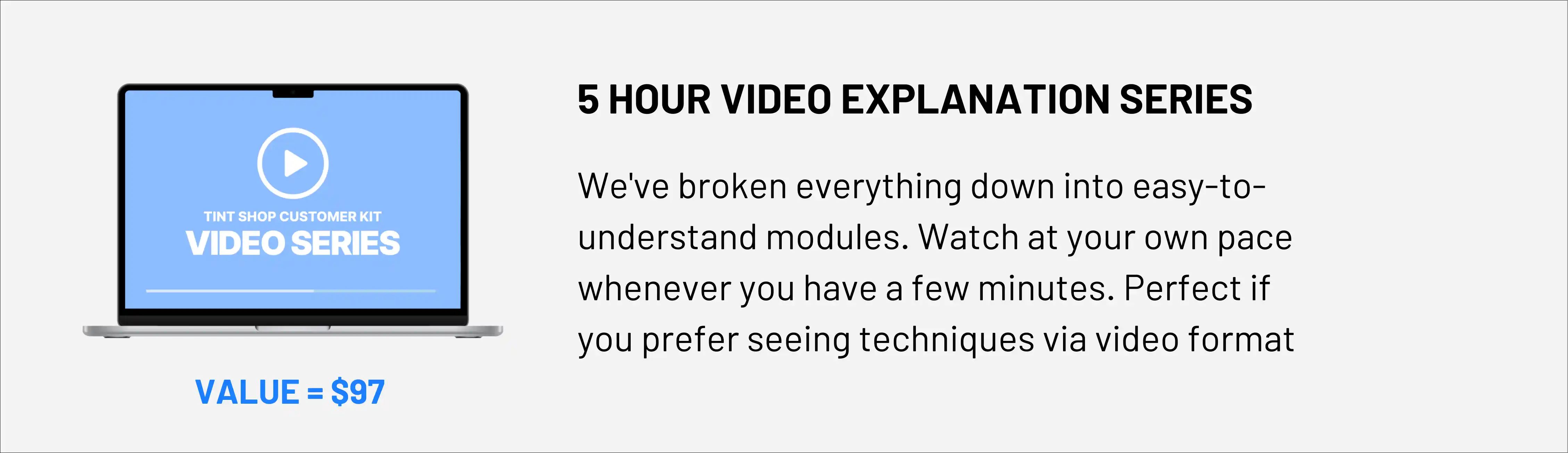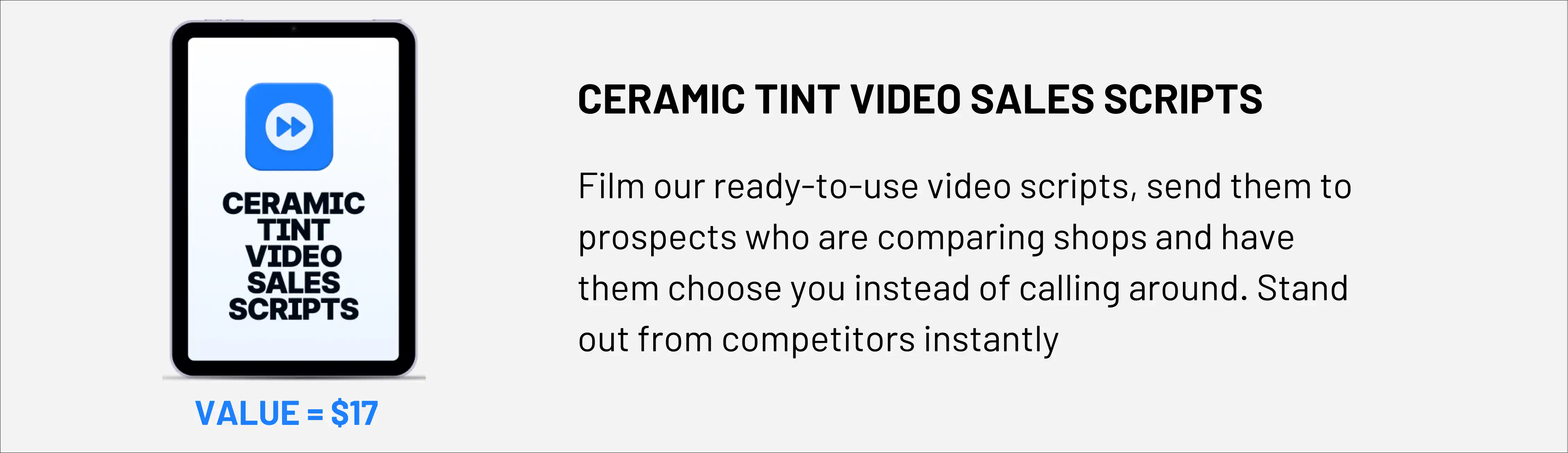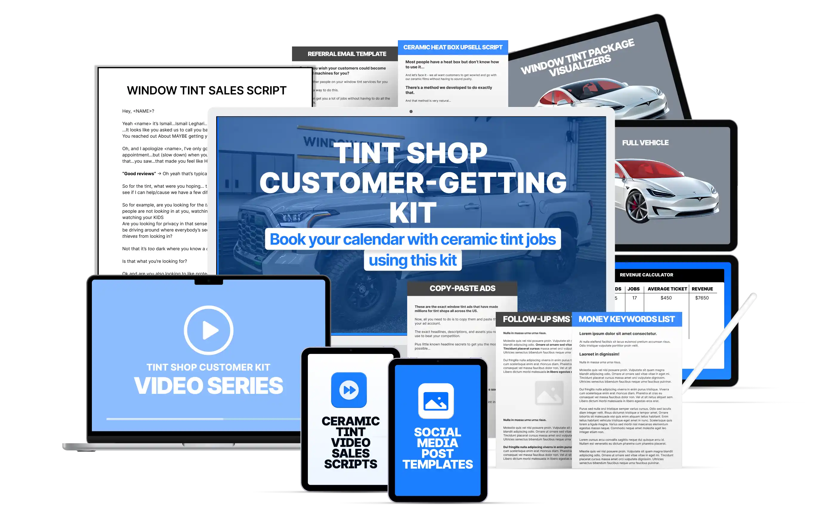 The Tint Shop Customer Kit is the ULTIMATE SHORTCUT to getting more tint leads, closing more sales, and looking like a pro — without wasting time or guessing what to do next.
