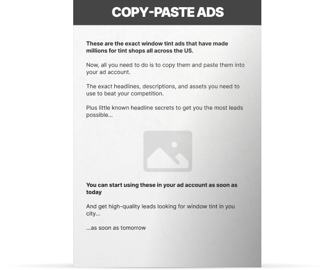 Use our same exact ads that everybody in your city sees, knowing that you'll be the #1 tint shop for when they're ready to book an appointment...